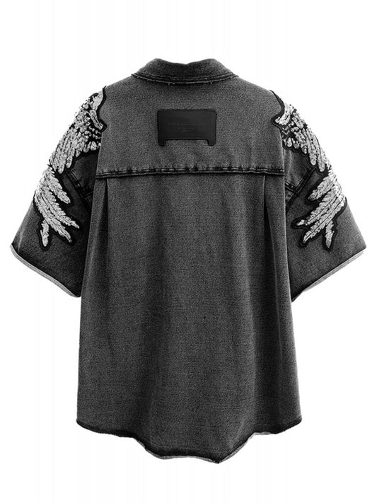 Camicia a mezza manica in denim con ali